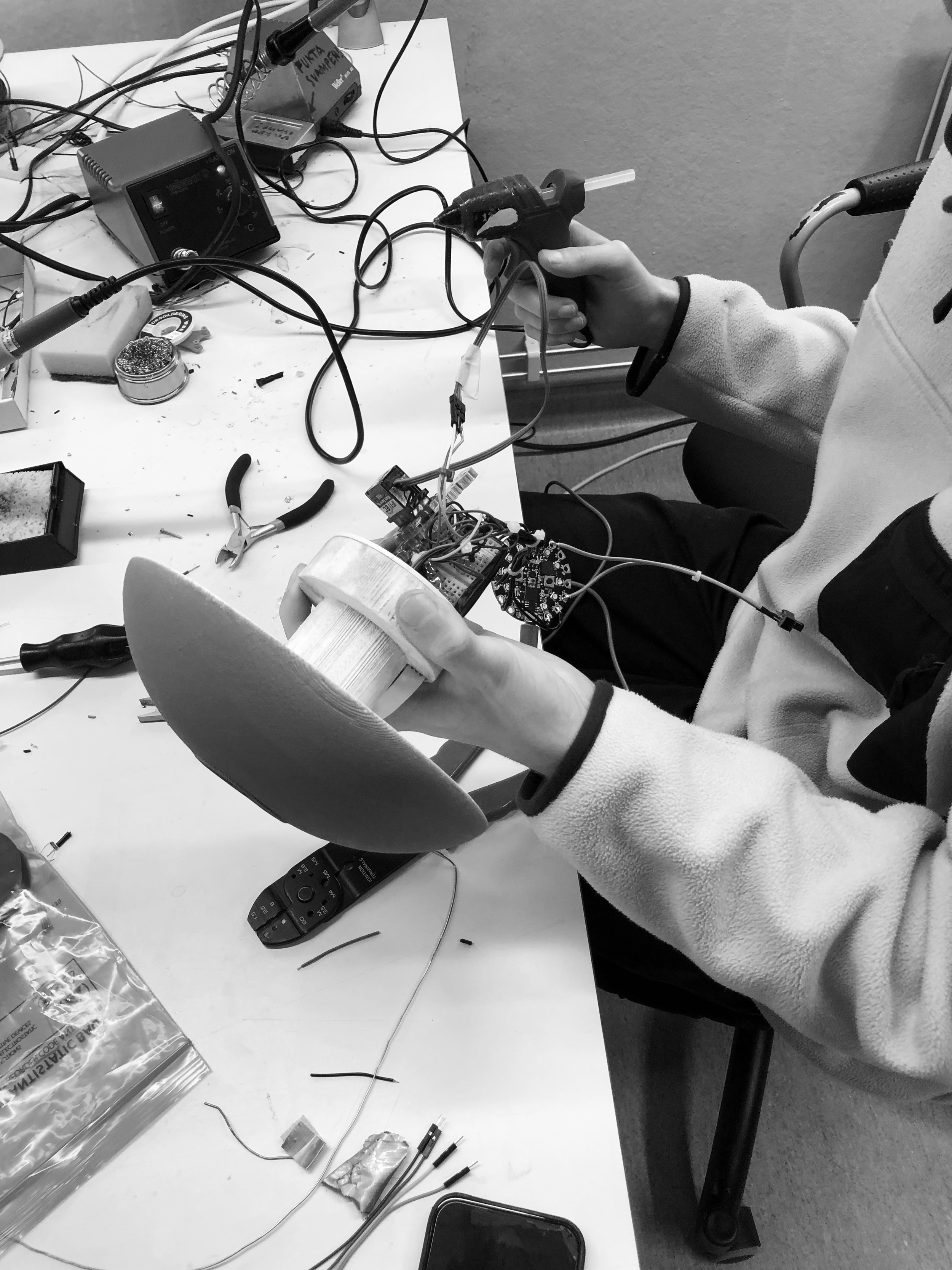 During our design process, we sought to innovate beyond the traditional luminaire. Rather than relying on a typical on/off switch, we envisioned a lamp that could be adjusted with a mere hand gesture. To make this possible, we incorporated technology to detect the distance between the lamp and the user's hand, allowing for accurate height adjustments and a more interactive user experience.