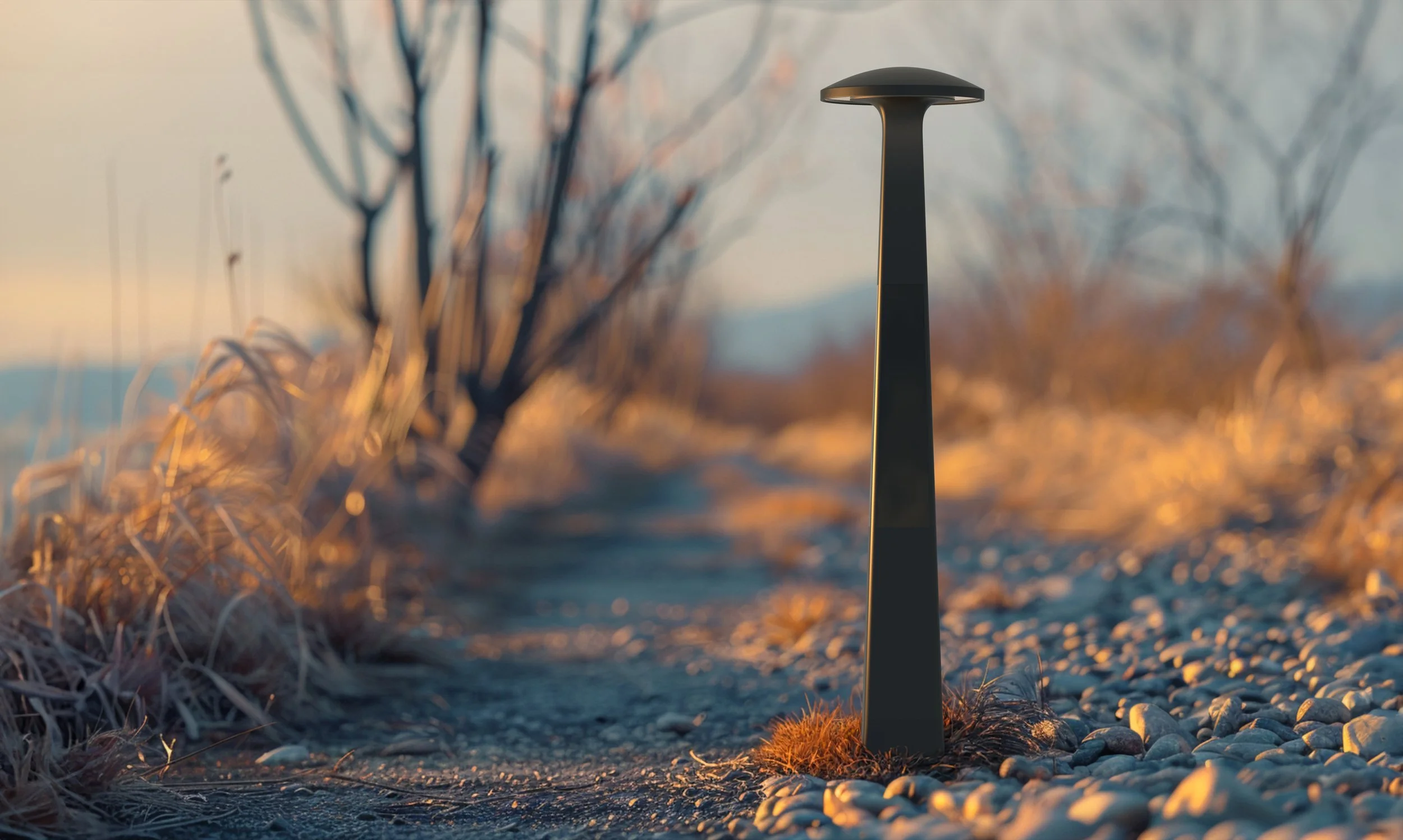 Design a outdoor bollard pathlight with a new design language and explore innovative ways to incorporate solar panels while meeting DarkSky regulations. The lamp will be 100% powered by solar energy, showcasing a new design language and promoting renewable energy adoption on a global scale.