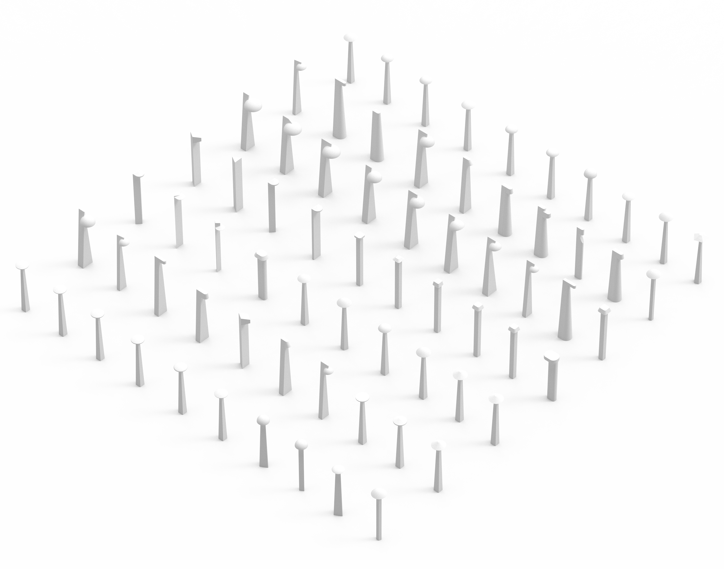 SPIK is characterized by a square base tapering towards its top, the bottom profile seamlessly transitions into a circular form at the peak. Its distinctive feature lies in the fusion of sharp edges reminiscent of a nail with the smooth curvature of its top.